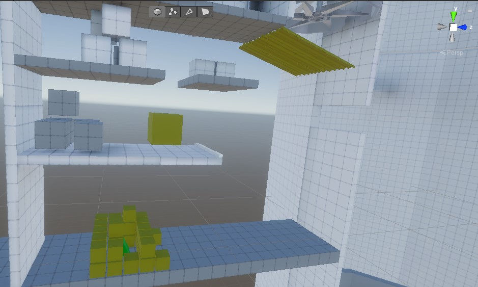 Concernant le layout, je me suis confronté pour la première fois aux retours de mes pairs et de collègues. Et je dois admettre que c'est très frustrant de voir qu'une partie d'un niveau que l'on a passé du temps à conceptualiser se trouve être beaucoup trop dure à passer pour quelqu'un. Je suis tombé deux trois fois dans le piège du "puisque moi je le passe, tout le monde peut le passer". Or, j'ai bien vu que tout le monde n'avait pas la même façon de jouer et qu'il allait falloir remettre la main à la pâte pour retravailler certaines zones !
